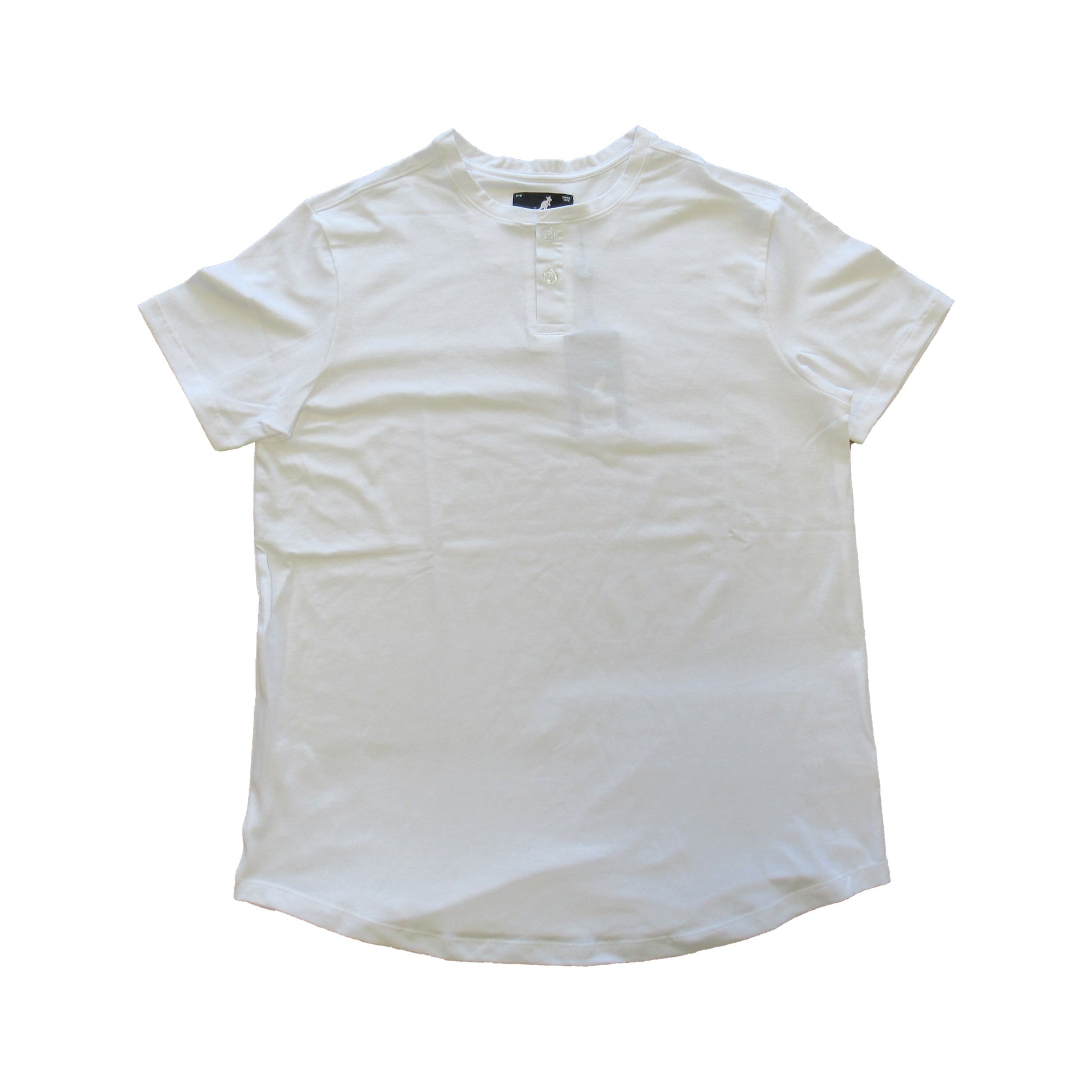 The blend of Cotton, Polyester and Spandex together gives this henley a deluxe handfeel. Styled with a rounded hemline and henley placket. Features the Kangol tab on hemline and logo embroidery at back neck.