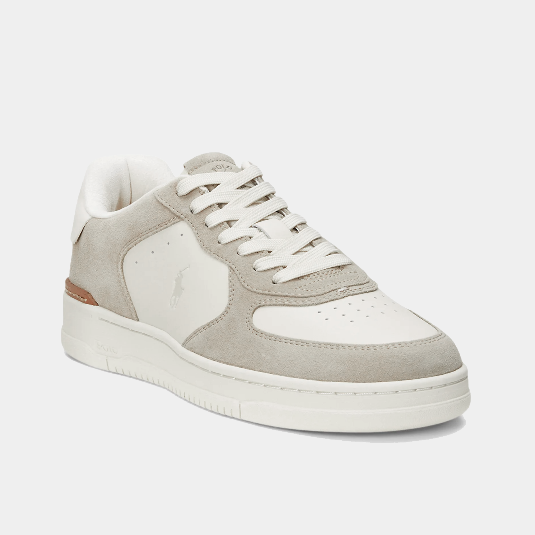 The Masters Court elevates Polo’s classic low-top sneaker, adding a leather heel clip, an EVA midsole, and a substantial sole. The tumbled leather upper is embossed for texture and finished with a perforated vamp and our multicolored signature embroidered Pony.