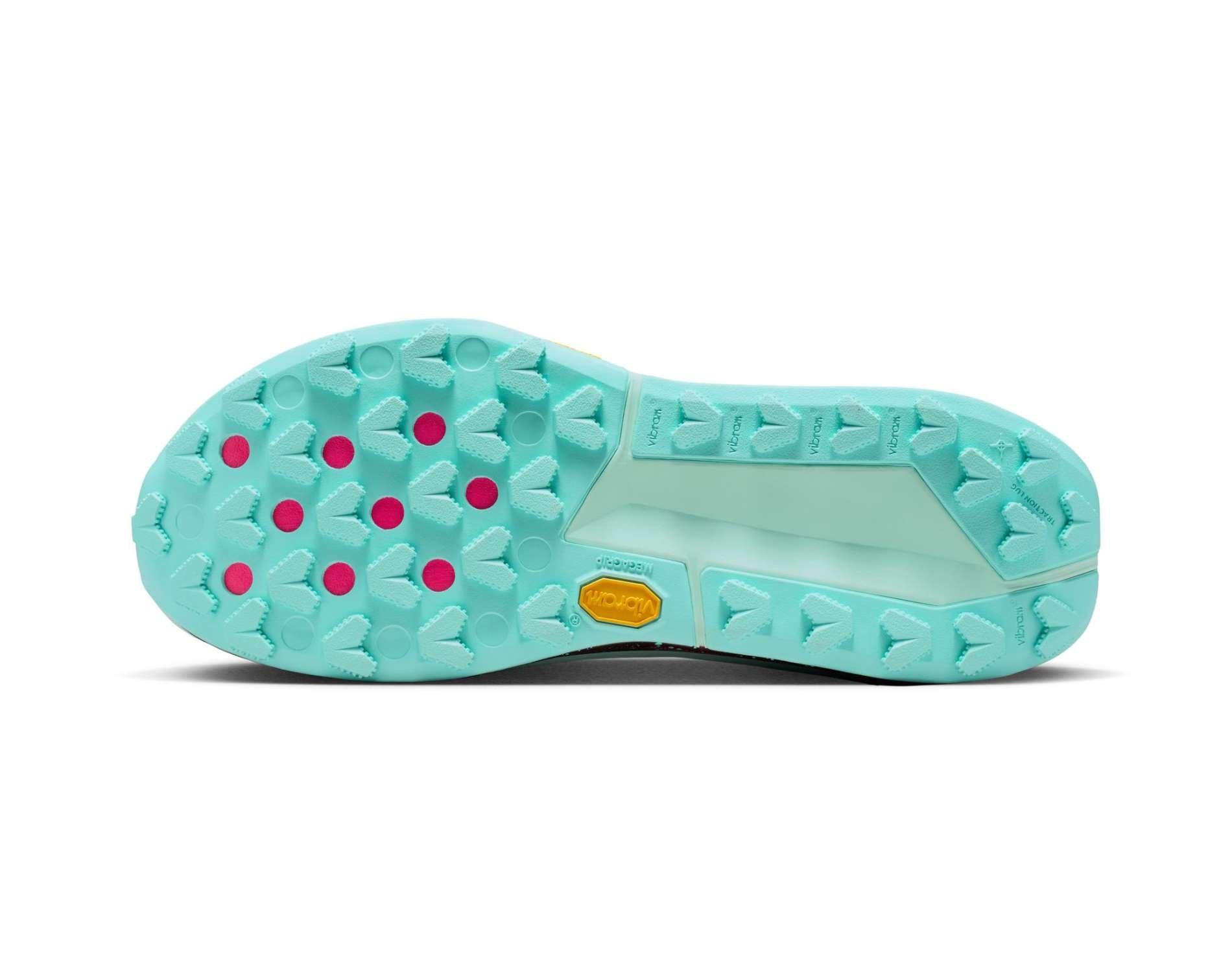 Vibram Zegama outsole made with Vibram Megagrip has a diverse lug pattern highlighted with wide spacing. This means you get traction for more technical terrains.