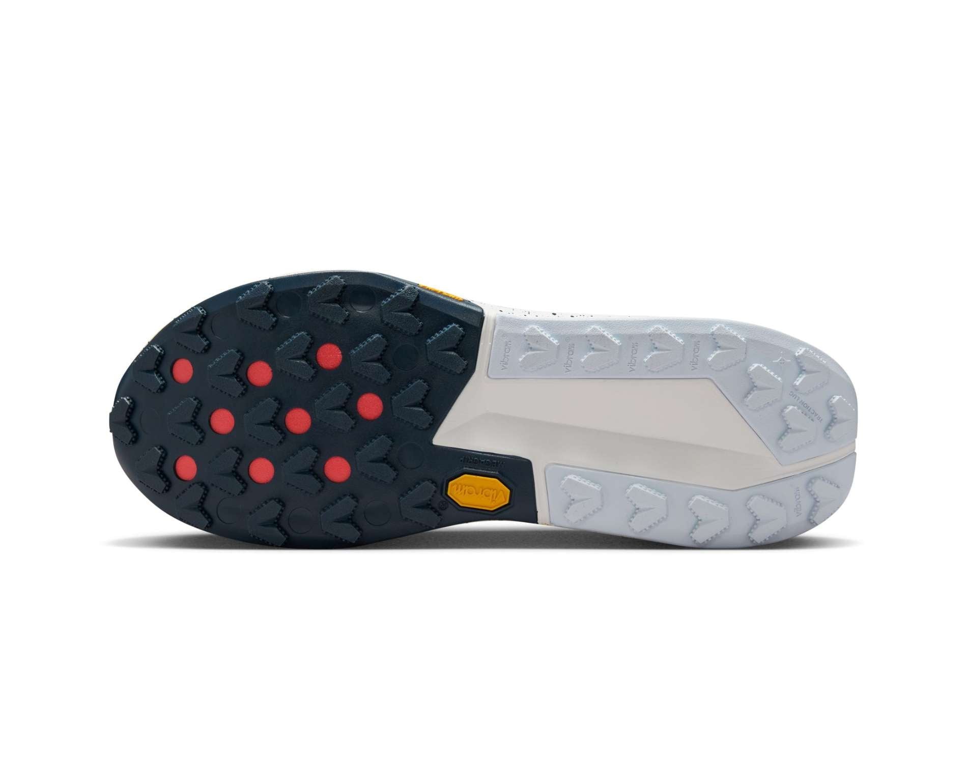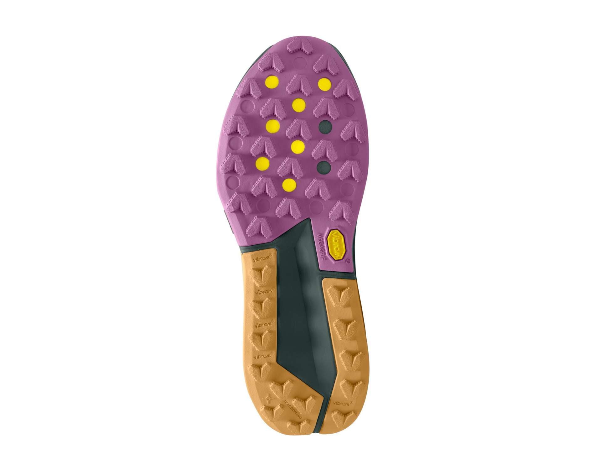 Vibram Zegama outsole made with Vibram Megagrip has a diverse lug pattern highlighted with wide spacing. This means you get traction for more technical terrains.