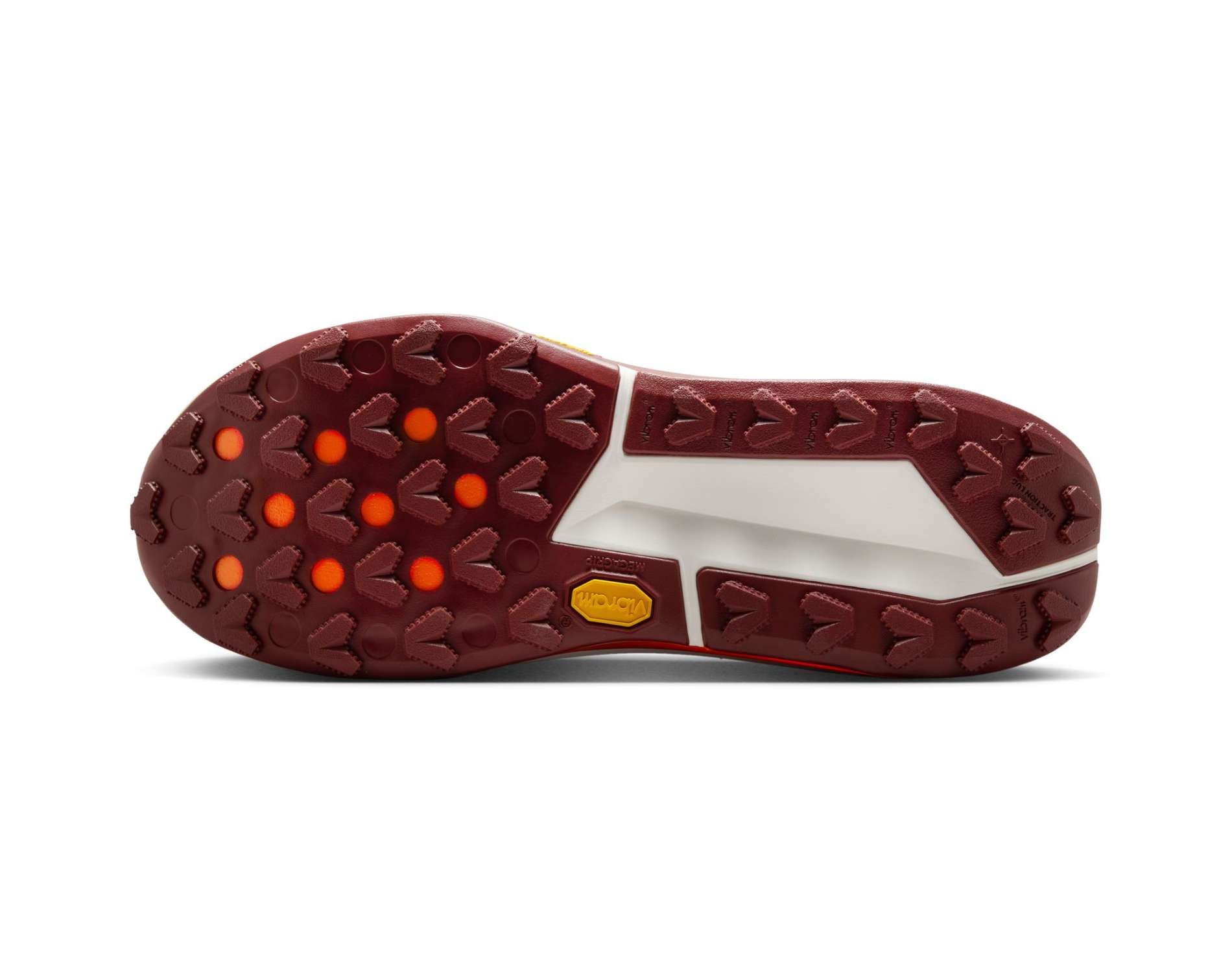 Vibram Zegama outsole made with Vibram Megagrip has a diverse lug pattern highlighted with wide spacing. This means you get traction for more technical terrains.