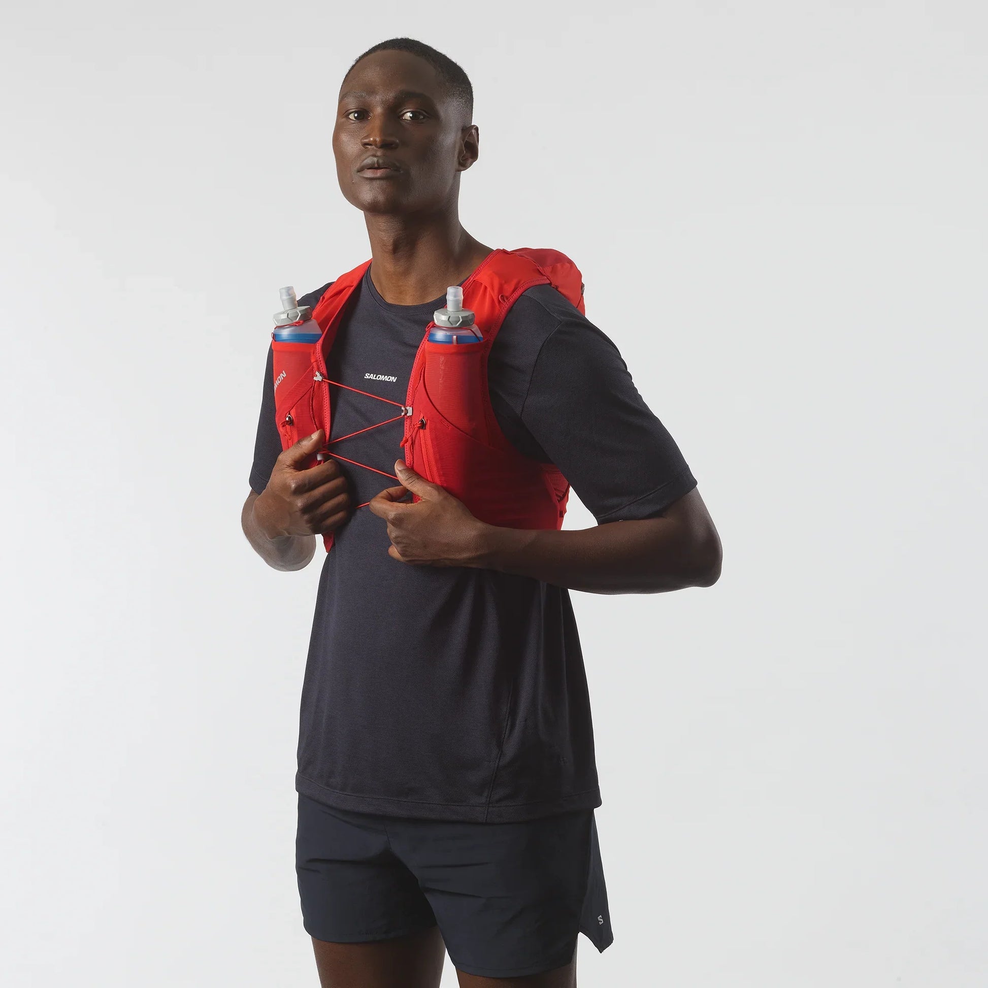 Designed for rapid, hassle-free access to hydration with new soft flasks that slide into the front pockets and won’t move around no matter how hard you run.