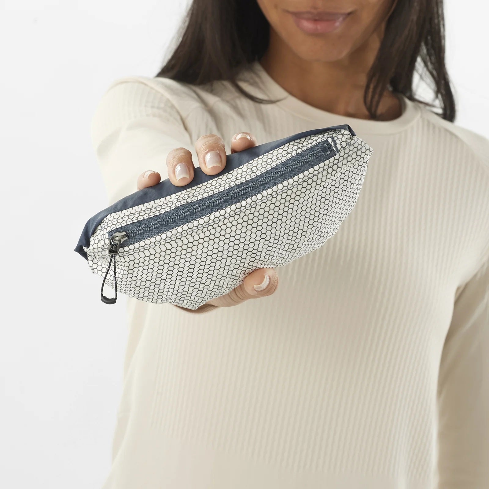 The whole jacket stows away in the chest pocket. Plus, 2 hand pockets for your essentials.