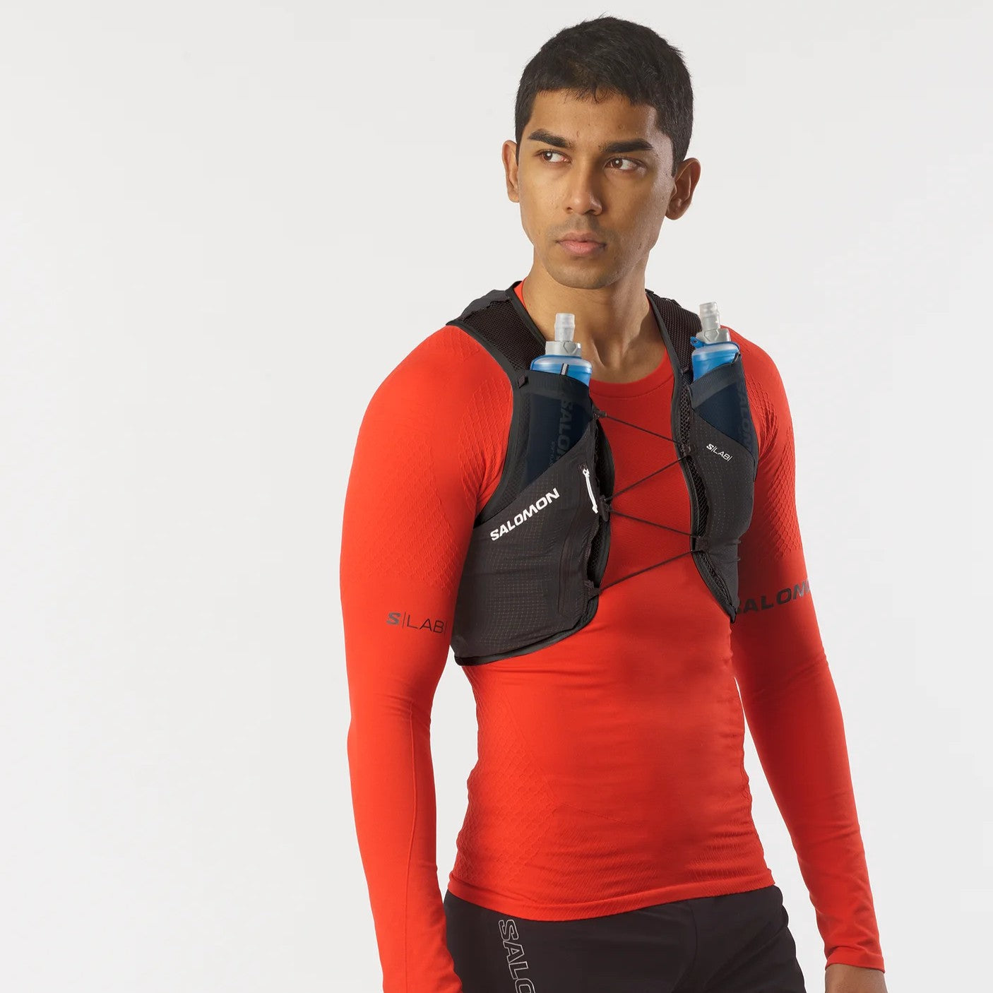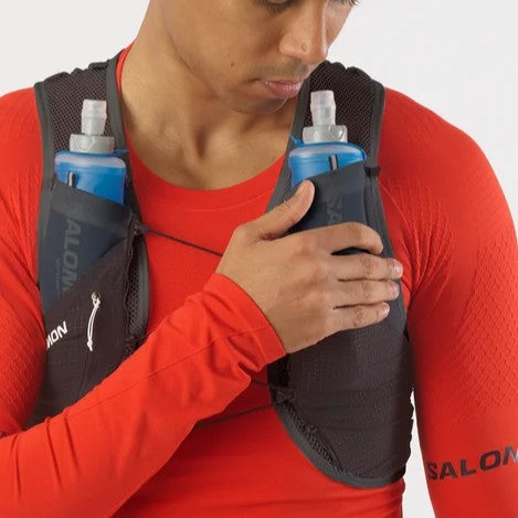The S/LAB PULSAR 3 is Salomon's minimalistic lightweight hydration vest, ideal for shorter runs. Modular, curated storage options offer quick, easy access to hydration on-the-fly. Two pockets in the front come equipped with 250 ml soft flasks, and a hybrid back pocket can store a 500ml flask or a jacket. The fit is snug and stable thanks to Sensifit™ and Quick Link fastening.