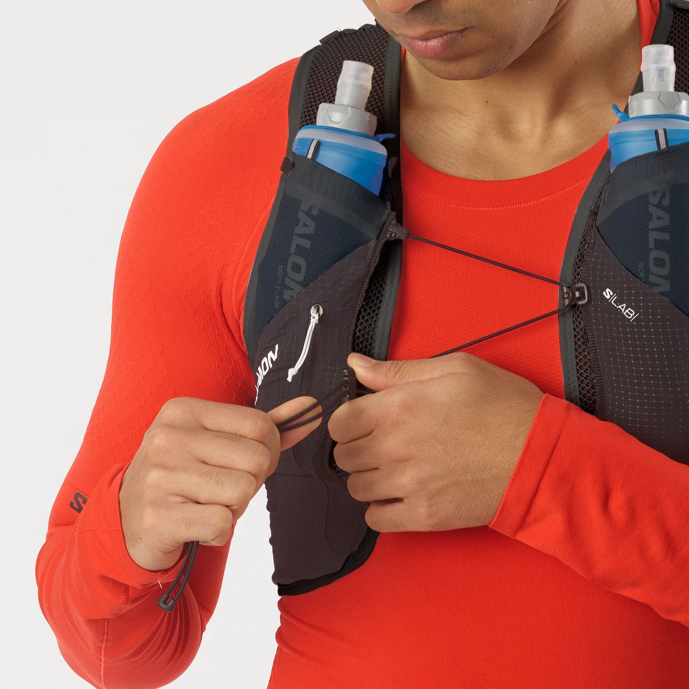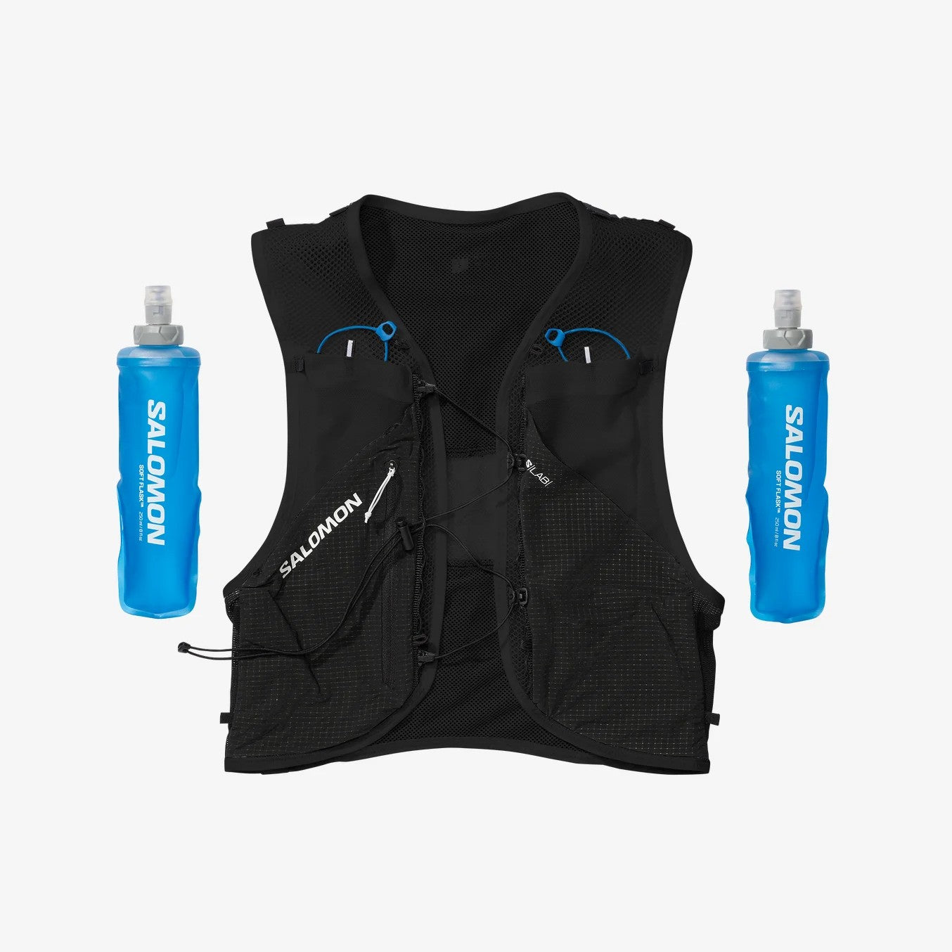 Modular, fast access hydration thanks to multiple storage solutions. Two front pockets include 250ml soft flasks, and a hybrid back pocket can be used to carry a 500ml flask or other essentials.